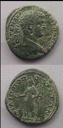 Homonoia standing in front of burning altar, holding patera and cornucopiae