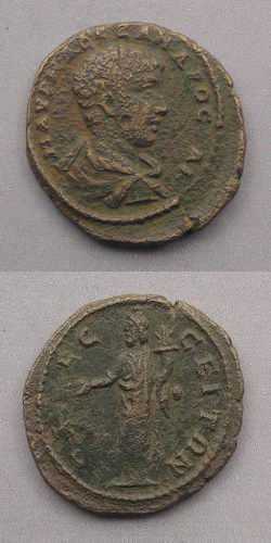 Great God standing left, offering sacrifice over altar and holding cornucopiae