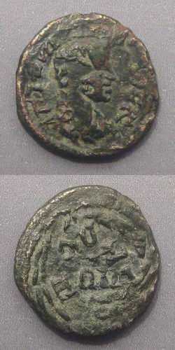 This coin shows the obverse portrait reasonably well centered. The reverse is double struck with the portrait of the river god being apparent. The letters INA are visible on the reverse but little else. I suspect the coin was struck at Augusta Traiana, Thrace.